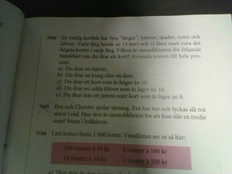 Intressant hur får du det ?? Det är ju totalt 6 'förbjudna' kort av 52.