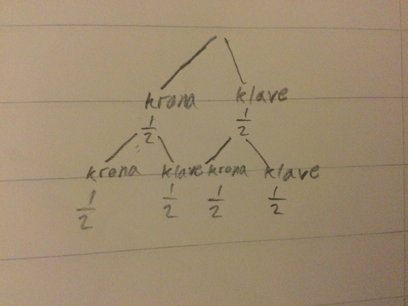 Programmeraren skrev:Ja, sannolikheten är 1/2 för krona (eller klave) i varje kast.