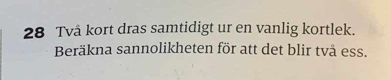 Alltså 4*3/(52*51) = 1/(13*17) = 1/221