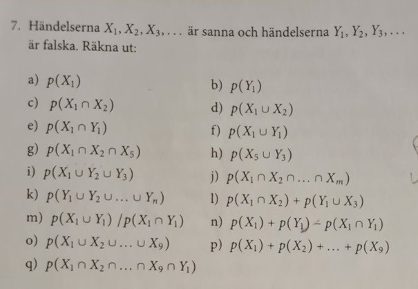 händelserna x1, x2 är sanna och händelserna y1,y2 är falska, räkna: