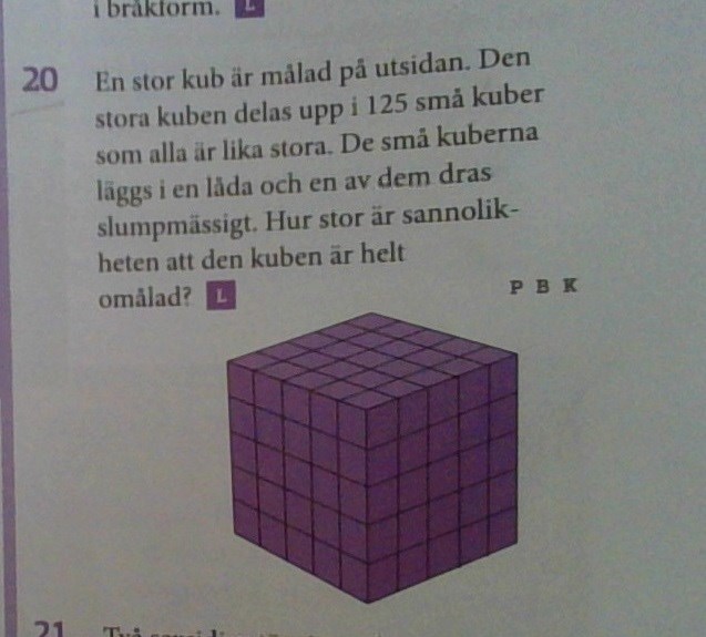 Det vet jag inte men jag försökte räkna hur många kuber som var målade genom att kolla på bilden. 6 sidor på en kub och 25 små kuber varje sida. 5x5.