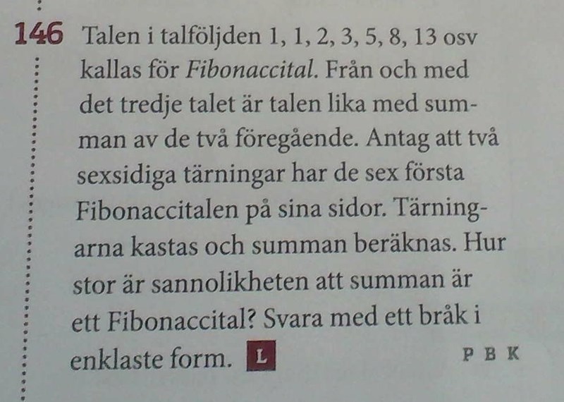 Räkna hur många av dessa 36 utfall som är fibonaccital.