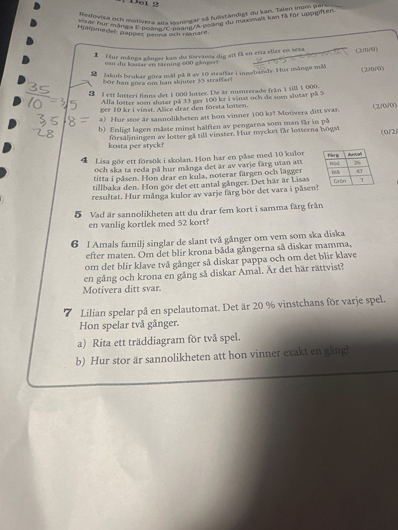 Uppgift 6 det är ju med alla 25% chans me i facit står de att de är 50% chans för krona klave o 25% krona krona