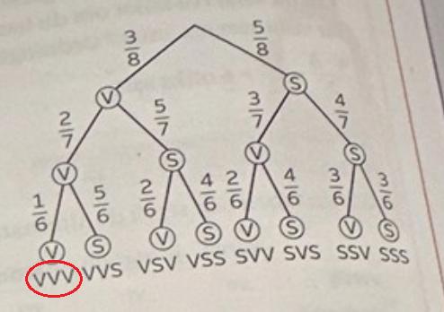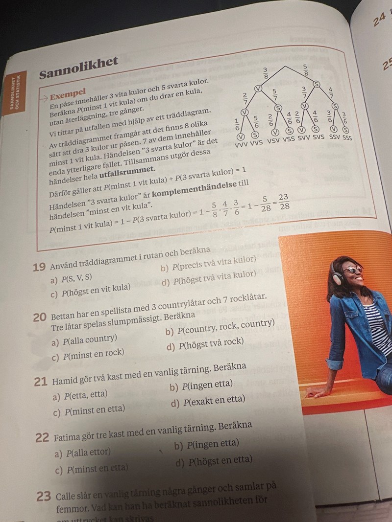 Jag har ringat in de resultat som har max en vit kula. Övriga har två eller tre.