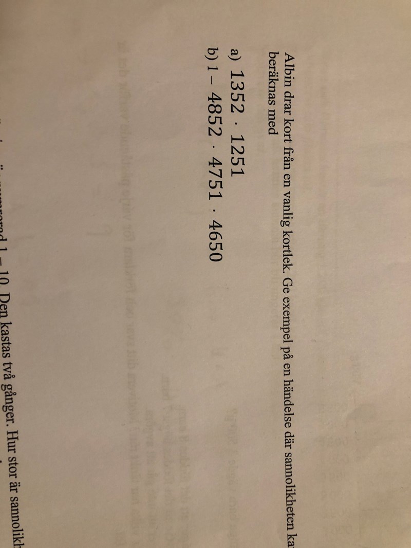 13/52 * 12/51 = slh för att man t.ex. drar 2 kort av samma färg i rad, t.ex. hjärter.