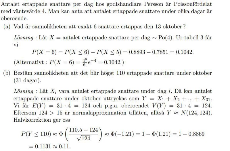 Först definierar de slumpvariabeln Y (antalet ertappade snattare under oktober) som en summa av oberoende Poissonfördelade variabler.