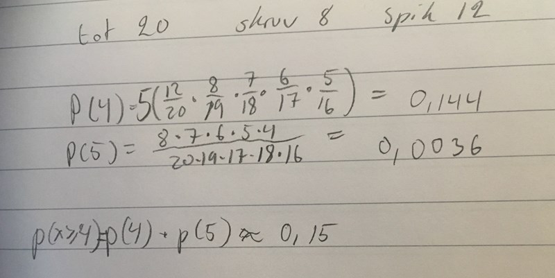 Klant vid miniräknaren med andra ord. :) Nu fick jag ett närmare svar iaf. Men det verkar stå fel siffra i facit, för jag slog in den andra formeln på miniräknaren också och fick samma.