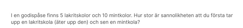Ja nu har du sannolikheten för att ta en lakritskola 5/15