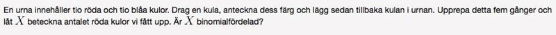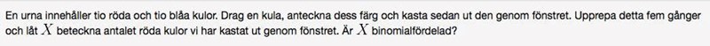 Medan nedanstående bild har korrekt svar att X inte är binomialfördelad: