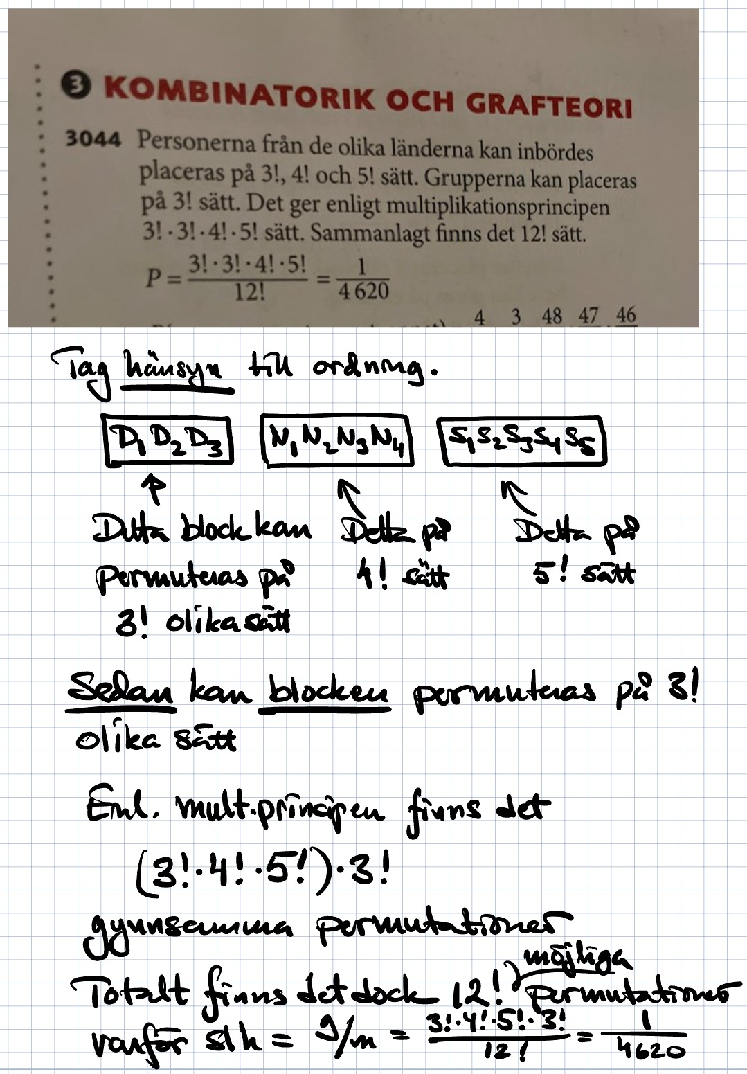 Sannolikhet att grupperna hamnar bredvid varandra, 3044