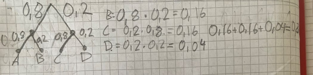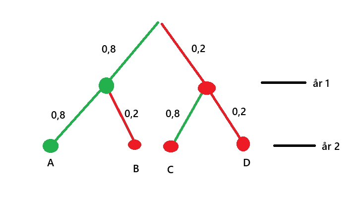 Vet du hur man räknar ut dessa sannolikheter ur ett träddiagram? Alltså sannolikheten för att B, C eller D skall inträffa.