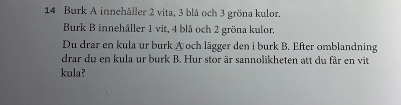 Vad är i så fall sannolikheten att dra en vit kula från burk B?