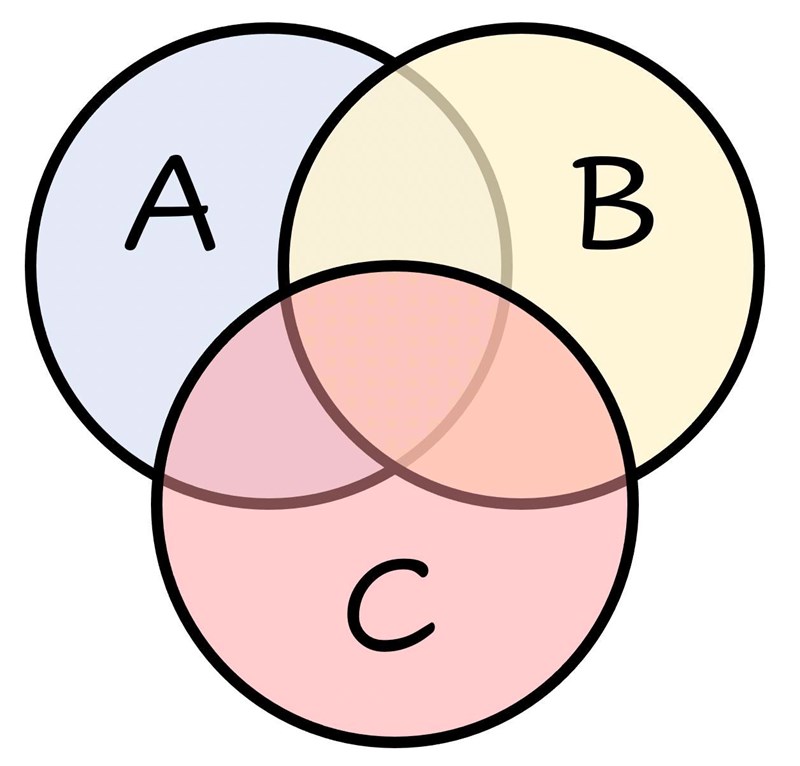 Vi provar genom att addera alla cirklar. Om vi lägger till cirklarna A, B och C har vi lagt till: