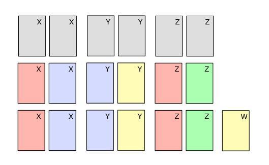 Detta innebär att vi nu valt 2+2+2=6 kort. Dock skulle 7 kort väljas. Och detta sista kort kan väljas på sätt, eftersom vi "tagit bort" de 12 korten (3*4) från de totala 52 korten.