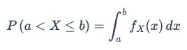 För kontinuerliga variabler spelar det ingen roll om du har strikt olikhet eller inte, resultatet blir detsamma (eftersom sannolikheten att en kontinuerlig variabel antar exakt ett specifik värde är 0). Så integralen är även lika med P(a<=X<b), P(a<X<b) och P(a<=X<=b)