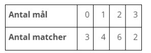 A11 En klubb för statistik över antal gjorda mål per match. Efter en säsong såg det ut enligt tabellen.