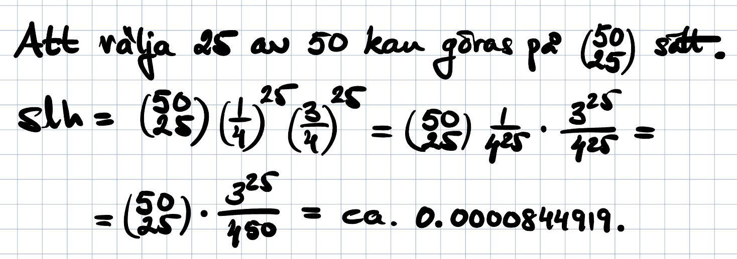 (1/4)^25.(50 över 25).(3/4)^25.50!/(50-25)!=