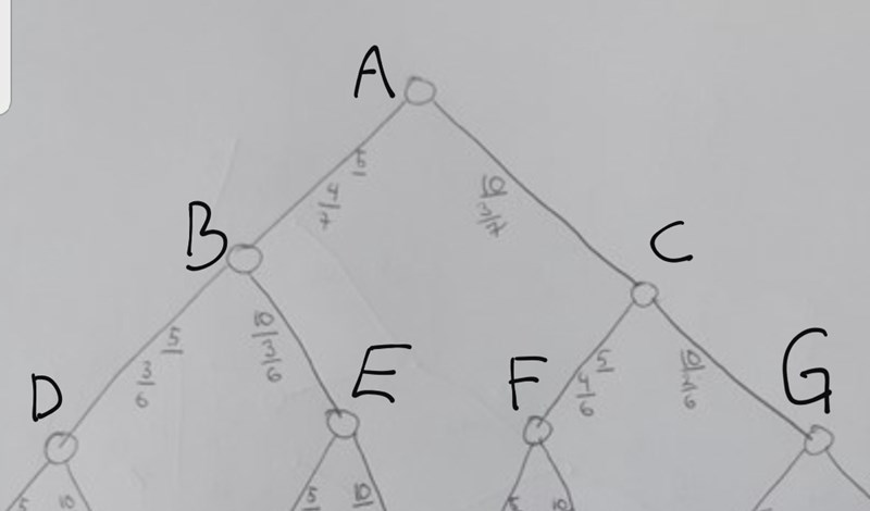 - Härifrån kan vi antingen dra en 5-krona vilket tar oss till läge B eller en 10-krona, vilket tar oss till läge C.