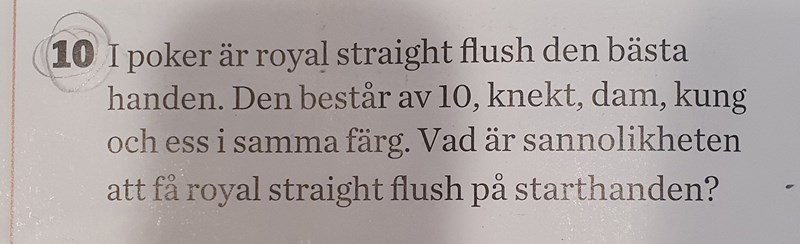 Sannolikheten av att få royal straight flush på starthanden