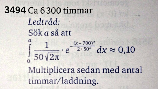 För övrigt tycker jag det verkar orealistiskt med ett batteri som forstätter att ha samma kapacitet så många gånger. Min gamla telefon äter batterier på ett sätt som den inte gjorde som ny! Så att räkna med normalfördelning tycker jag verkar vara en ganska liten approximation jämfört med detta.