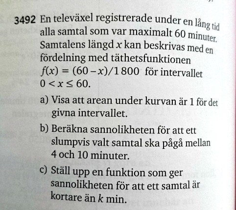 Okej, men bara så du inte missförstod mig nu, i denna uppgift så kan du inte slå upp något i någon tabell. Eftersom det inte är en normalfördelning.