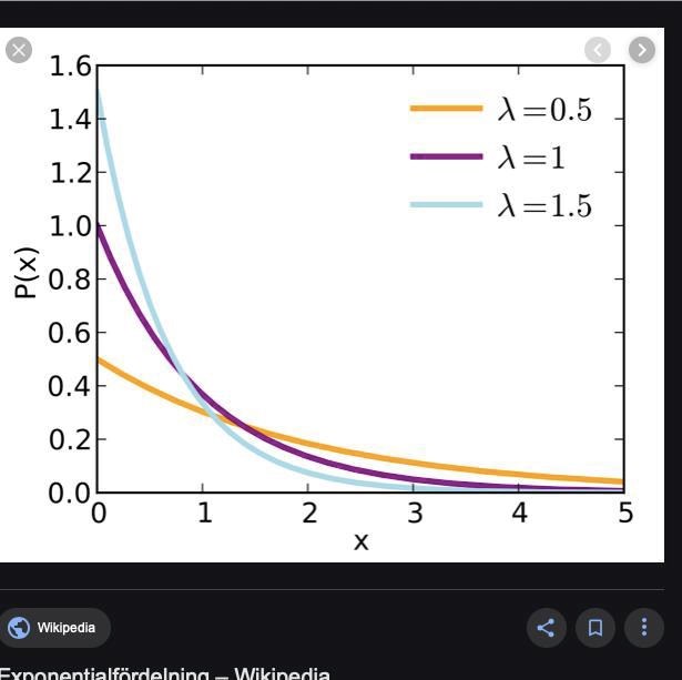 varför är X, inte exponentialfördelad? tänker att första kaffen är god liksom "då står man högt upp på y-axlen, och med tiden (x) avtar suget efter kaffet,