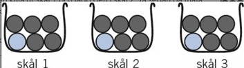 "Ta på måfå en kula ur skål 1 och lägg den i skål 2. Ta sedan på måfå en kula ur skål 2 och lägg den i skål 3. Ta till slut på måfå en kula ur skål 3.