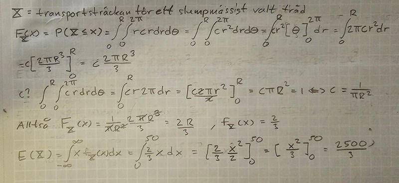 När du multiplicerar "något" med täthetsfunktionen (korrekt normerad) och integrerar överallt så blir resultatet väntevärdet av "något". (Här är "något" det radiella avståndet till cirkelns centrum, r.)