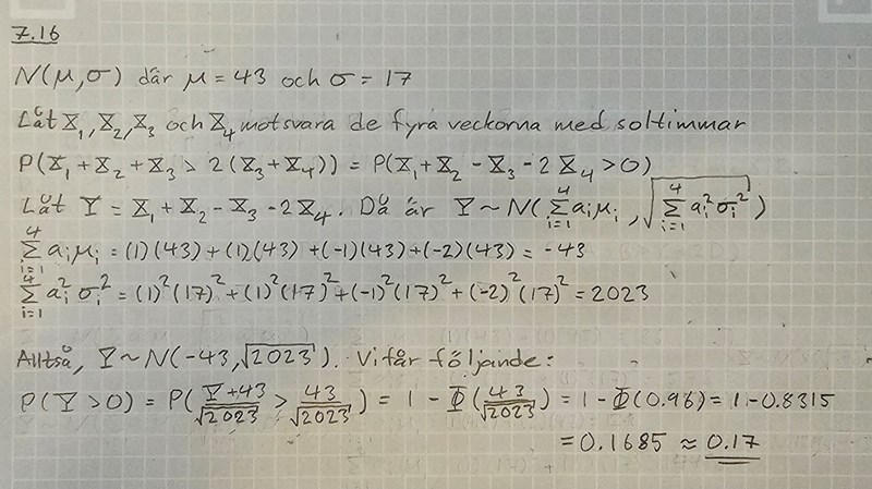 Laguna skrev:Vi har fyra stokastiska variabler, A, B, C, D, för soltimmarna de fyra veckorna.