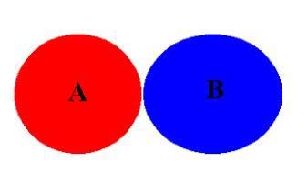 Om två händelser, t.ex. A och B, är disjunkta är snittet mellan dem lika med tomma mängden (inga gemensamma händelser), vilket ser ut enligt nedan: