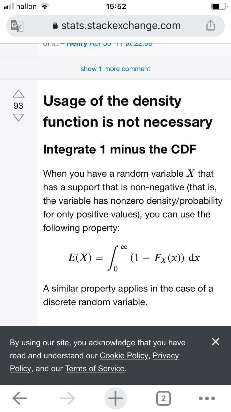 Med andra ord får jag att E(X) = x ovan. Detta är fel enligt facit. Någon som vet hur jag tänker fel?