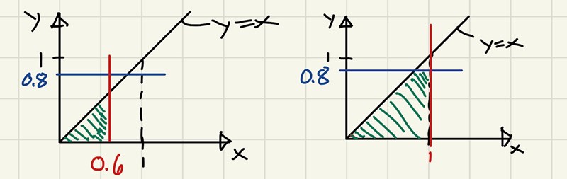 Täljaren ska ju gälla för båda villkoren och nämnaren bara för det som är givet (Y<0.8 och för hela x området (0<x<1)).