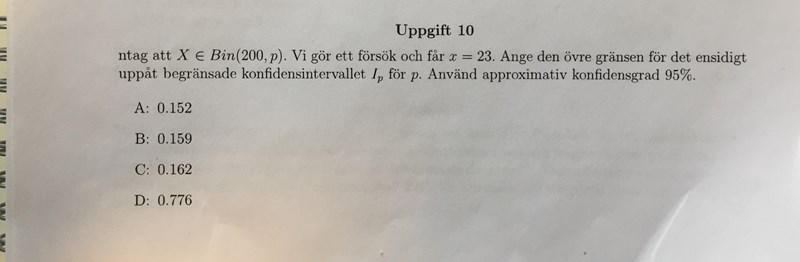 edit: När jag använder maximum likelihood metoden får jag p = 23/200 men hur ska intervallet bestämmas?