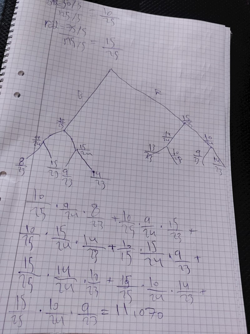 Snyggt träddiagram! Du har förstått hur det fungerar när man inte lägger tillbaka kulan.