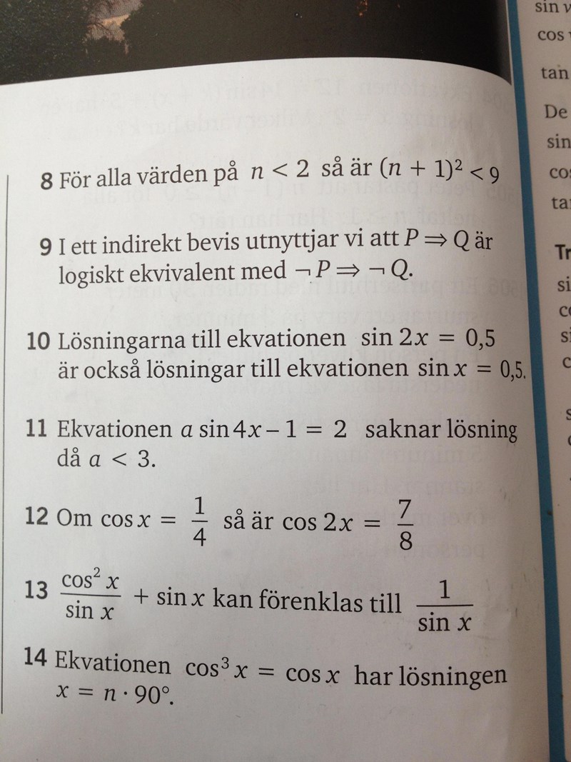 Som sagt, hitta en enda lösning till ekvationen sin(2x) = 0.5, är denna lösning även en lösning till sin(x) = 0.5? Är svaret nej så är påståendet falskt.