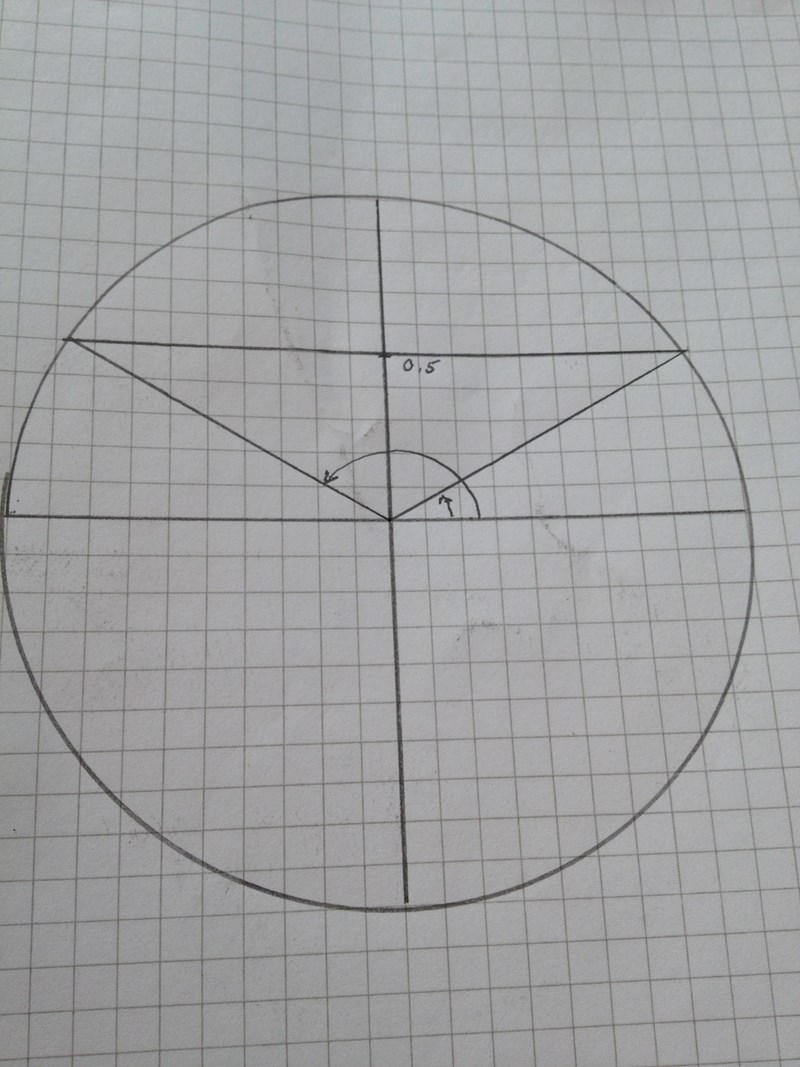 Fortsätt sedan att i enhetscirkeln markera alla vinklar u som uppfyller sin(2u) = 0,5.
