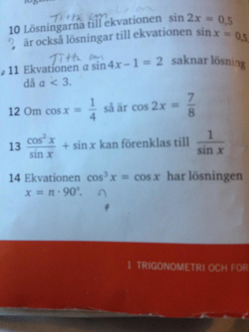 Vad kan man säga om cos 1. Den ligger på 360 grader eller noll grader.