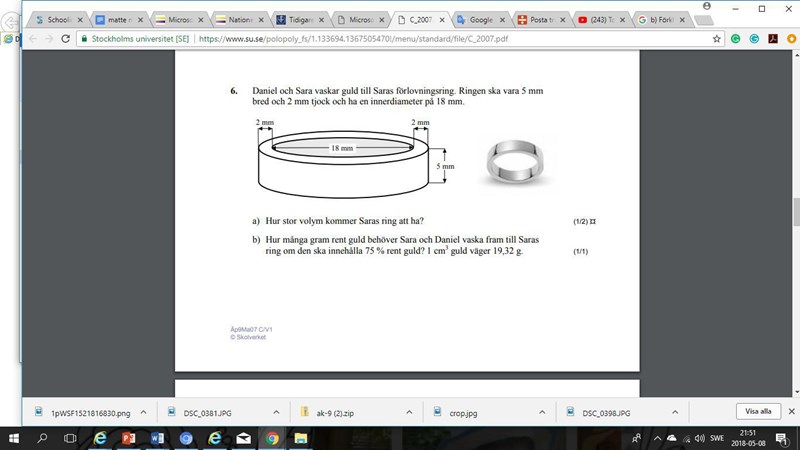 diametern 22 mm (2+18+2 mm) och 5 mm tjock. Räkna ut den volymen.
