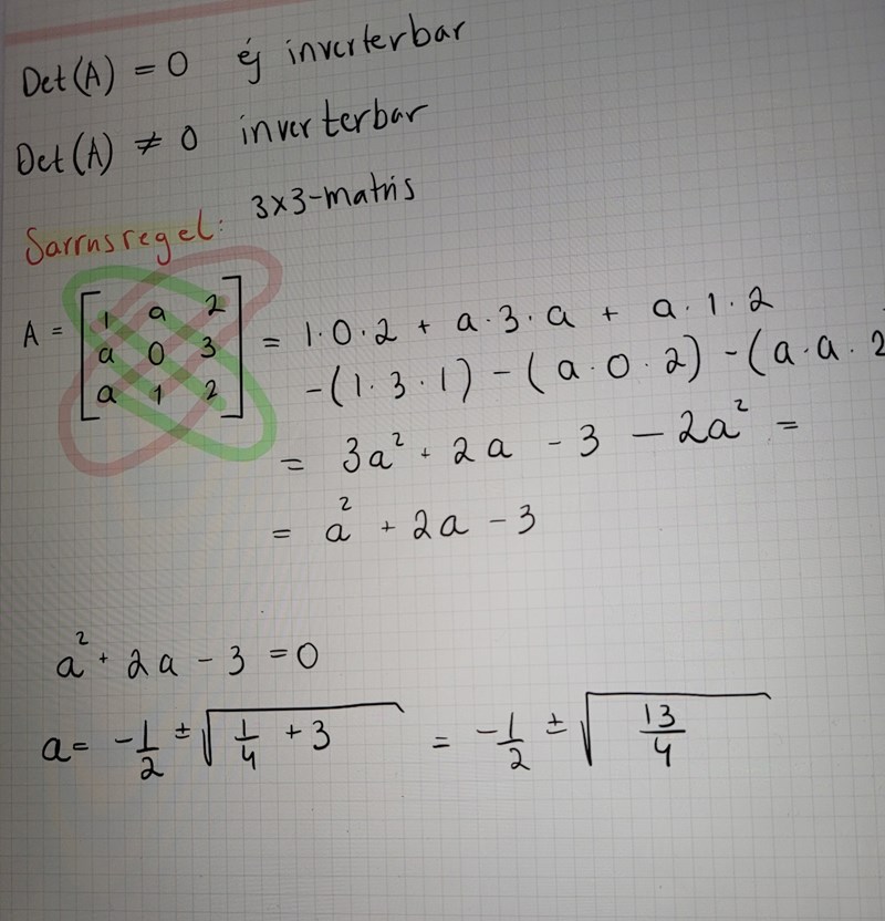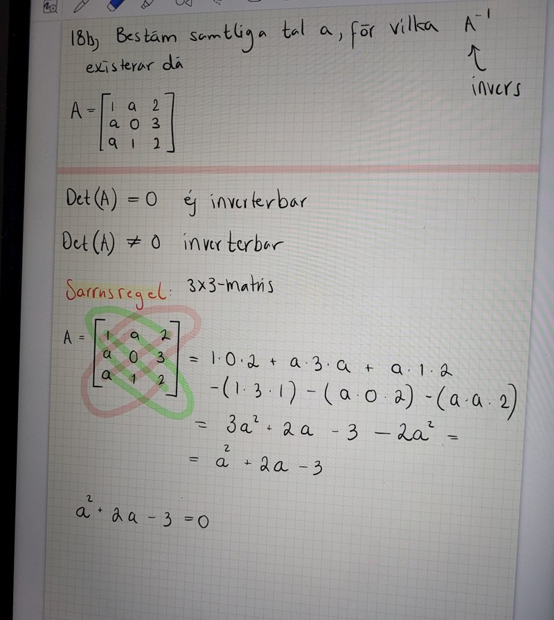 Viss hur du räknat, det ser ju ut som att du har beräknat determinanten korrekt eftersom man får noll med a=1 och a=-3 om jag inte räknade för snabbt nu.