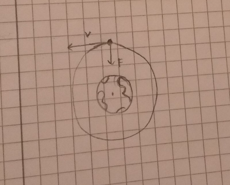 Att den går runt på ett dygn betyder en formel till, som ger ett samband mellan r och v.