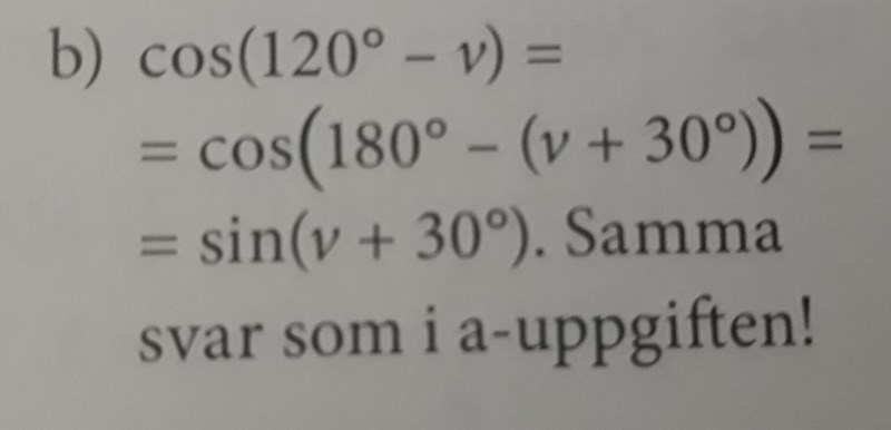 cos(120-v)=(cos(180-(v+30)) och så sätter basinski v=0 och får