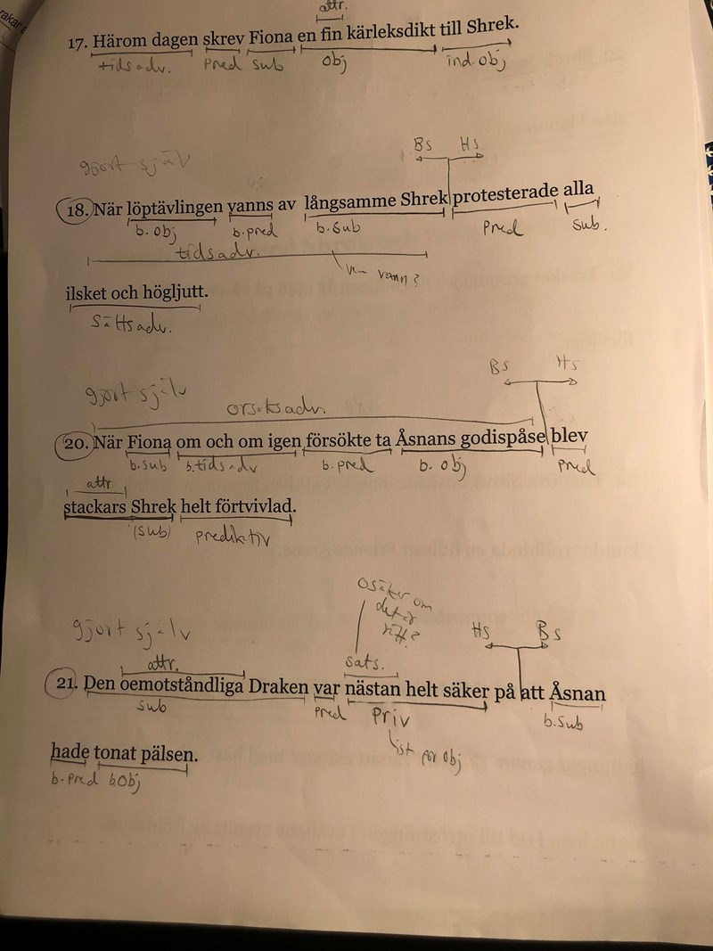 I mening 21 så ser det ut som om du markerat att "tonat" hör till objektet. Detta är ett verb och ska ingå i predikatet.