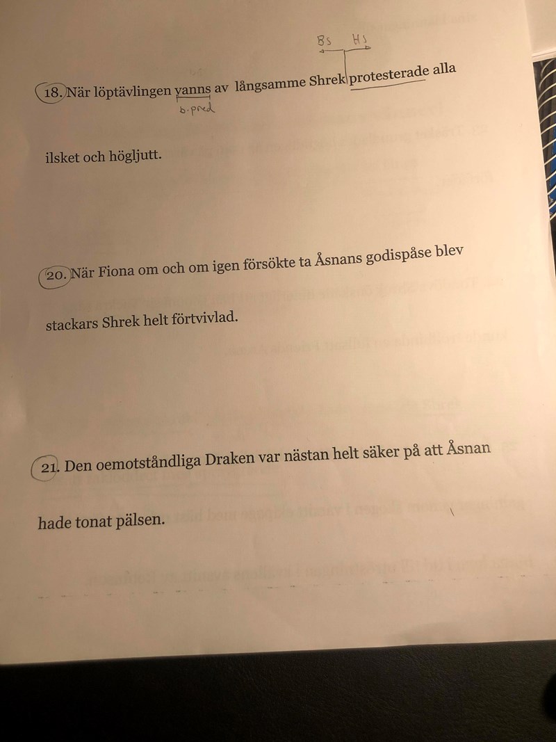 Exempel Fråga 20 Bisats: När Fiona om och om igen försökte ta Åsnans godispåse