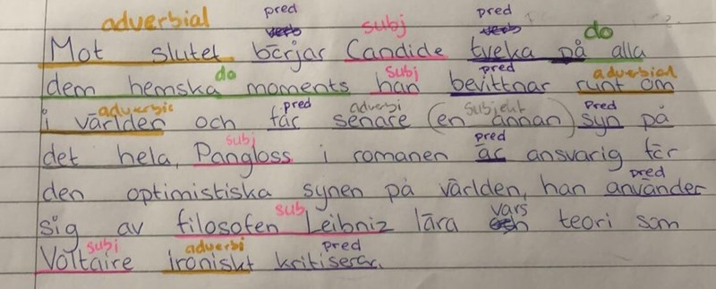 Hej! Jag skulle behöva hjälp med att plugga ut de olika satsdelarna i den här meningen. Tanken med uppgiften är att jag ska rätta meningen grammatiskt och har börjat med att ta ut alla ordklasser men måste nu ta ut alla satsdelar såsom, subjekt, predikat osv men jag har fastnat en del så behöver en del hjälp. Hela meningen är ju helt fel så tycker det blir så svårt att ta ut rätt saker. Tack på förhand till er som hjälper! :)