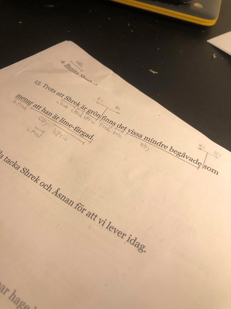 Vad blir subjektet i ”som menar att han är lime-färgad”?