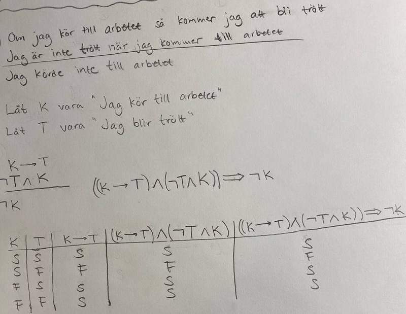 Tänker men på uppgiften så förstår man att "ja, denna är sann" men jag vill visa det matematiskt. Var smyger sig felet in?