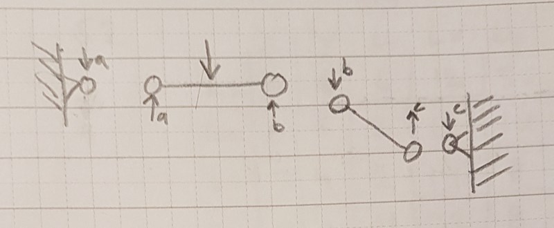 Kan någon förklara hur man resonerar på den här uppgiften ? Tänkte något sånt här, där a, b och c är lika som sina reaktionskrafter, men det verkar inte rimligt. Har inget facit på denna.