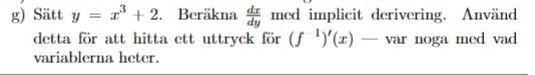 Sen undrar jag också hur och varför man kan använda det för att få fram inversens derivata, som enligt facit bara är att sätta in inversa funktionen som x i .