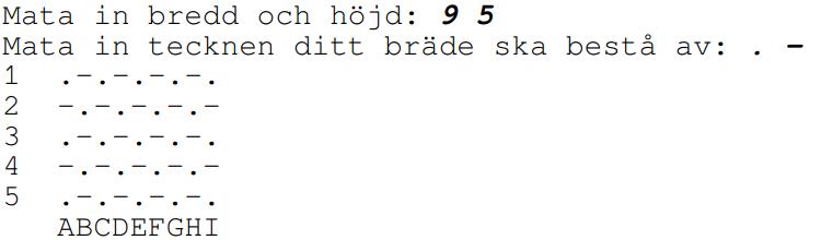 Jag har en uppgift som går ut på att skapa ett program där användaren matar in höjd och bredd till ett schackbräde samt vilka tecken det ska bestå av. Exempelvis: