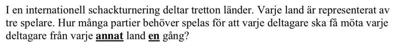 jag räknade först hur många matcher som ska spelas om det bara var 2 eller 3 länder.